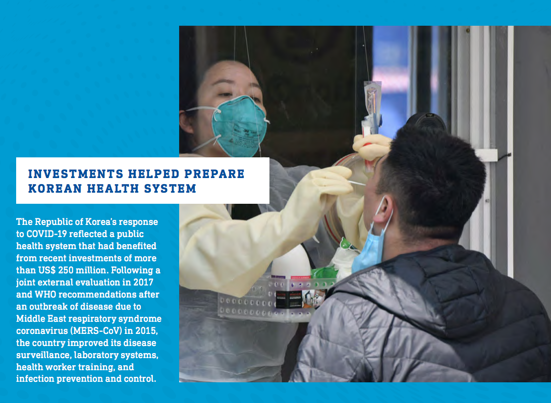 sustained investment in health workers and health systems, as the