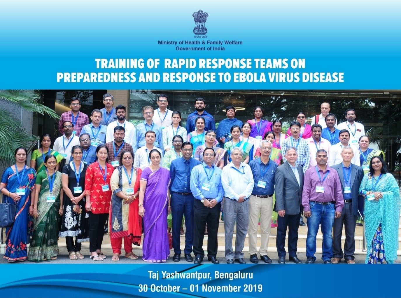 The Ministry of Health & Family Welfare, Government of India is conducting a series of workshops with technical support from WHO to strengthen India’s overall preparedness to respond to EVD and other high threat pathogens with outbreak potential. A series of five sub-national EVD workshops to train state Rapid Response Team (RRT) members, airport and port health officials, clinicians and administrators are being conducted in Bengaluru (30 October-1 November), Pune (14-16 November), Guwahati (27-29 November), Bhubaneswar (11-13 December) and Delhi (18-20 December 2019) to strengthen the preparedness, operational readiness and response.