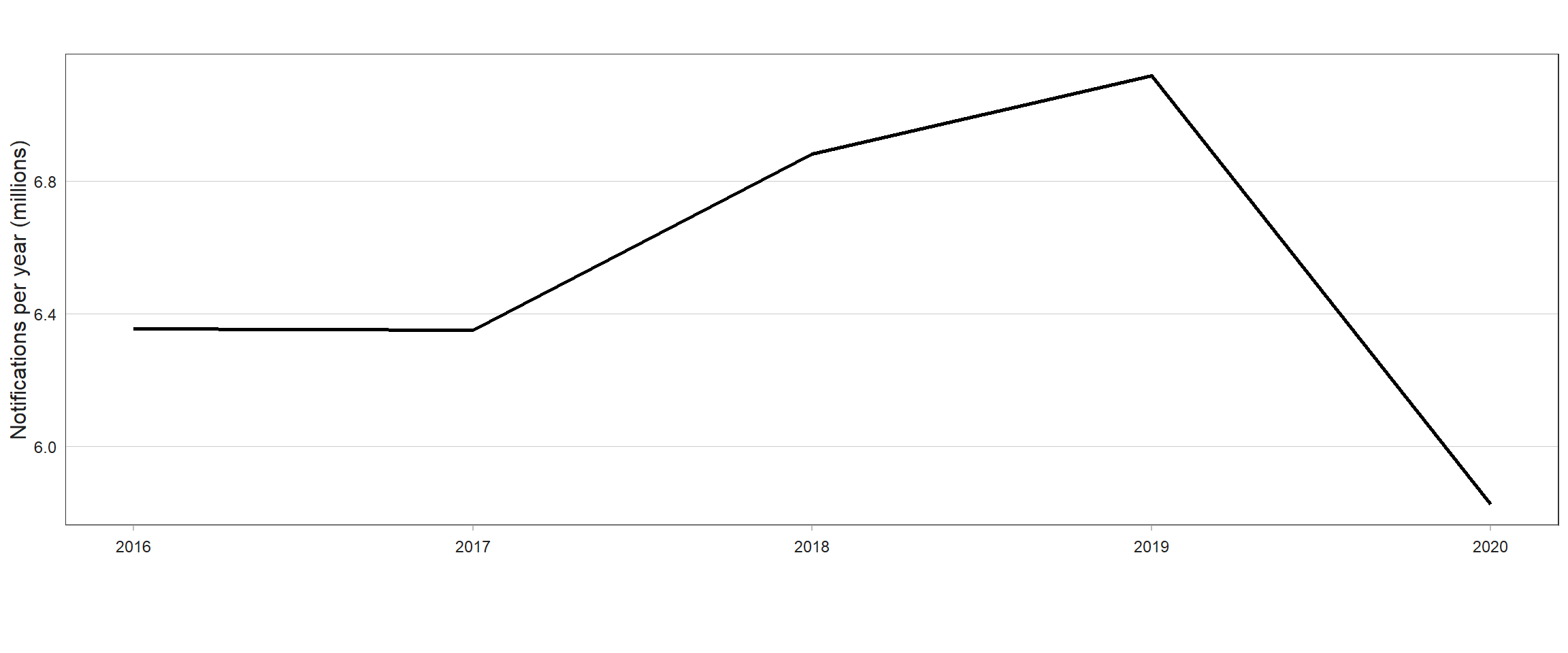 Fig. 1.1 Global trend in case notifications of people newly diagnosed with TB, 2016–2020